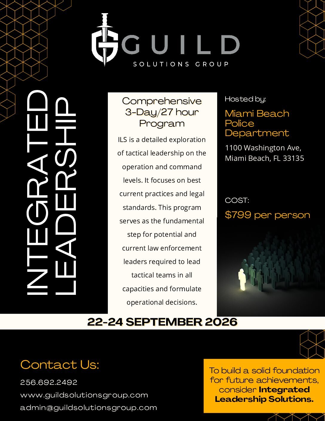 Our comprehensive three-day, 27-hour course provides a detailed exploration of tactical leadership on the operation and command levels. It focuses on the best current practices and legal standards. This course serves as the fundamental step for potential and current law enforcement leaders required to lead tactical teams in all capacities and formulate operational decisions. If you seek to build a solid foundation for future accomplishments, we recommend considering Integrated Leadership Solutions.
